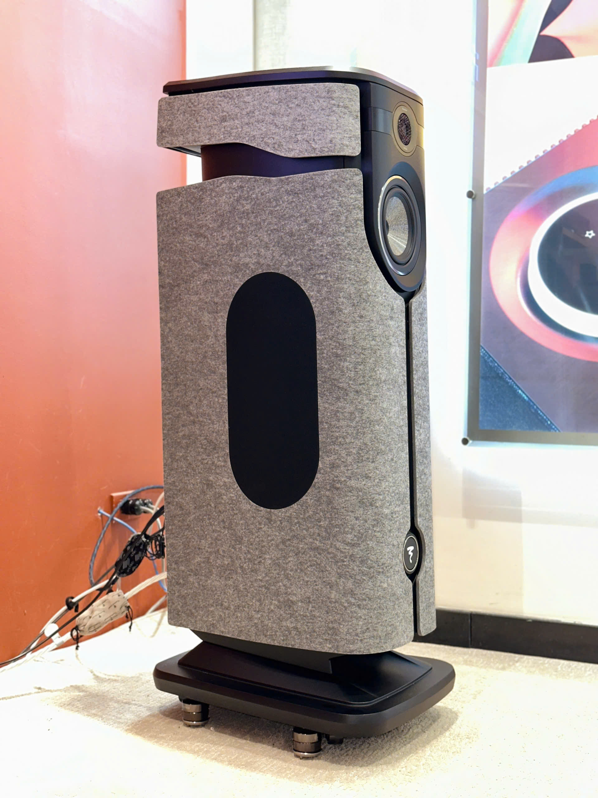 Điểm “decor-friendly” mà SoundStage nhắc đến cũng đến từ triết lý thiết kế: bài review mô tả thùng loa dùng high-density molded polymer thay vì MDF truyền thống; mặt trước và hai bên có các tấm “dress panels” bằng felt dạng “floating”, tháo lắp được.